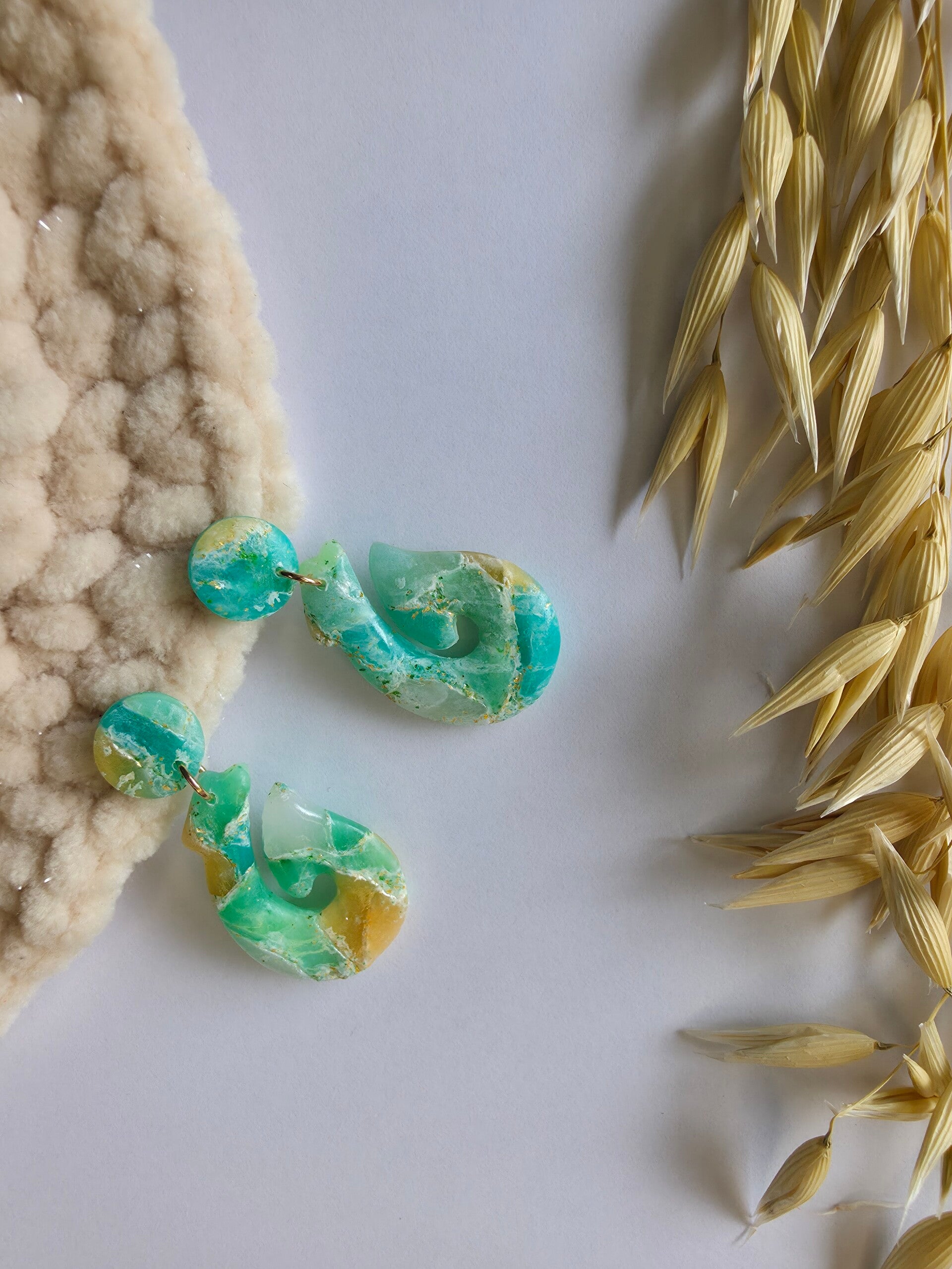 kleurrijke zomerse oorbellen, groentinten, lichtgewicht. Gemaakt uit polymeerklei en RVS stekers