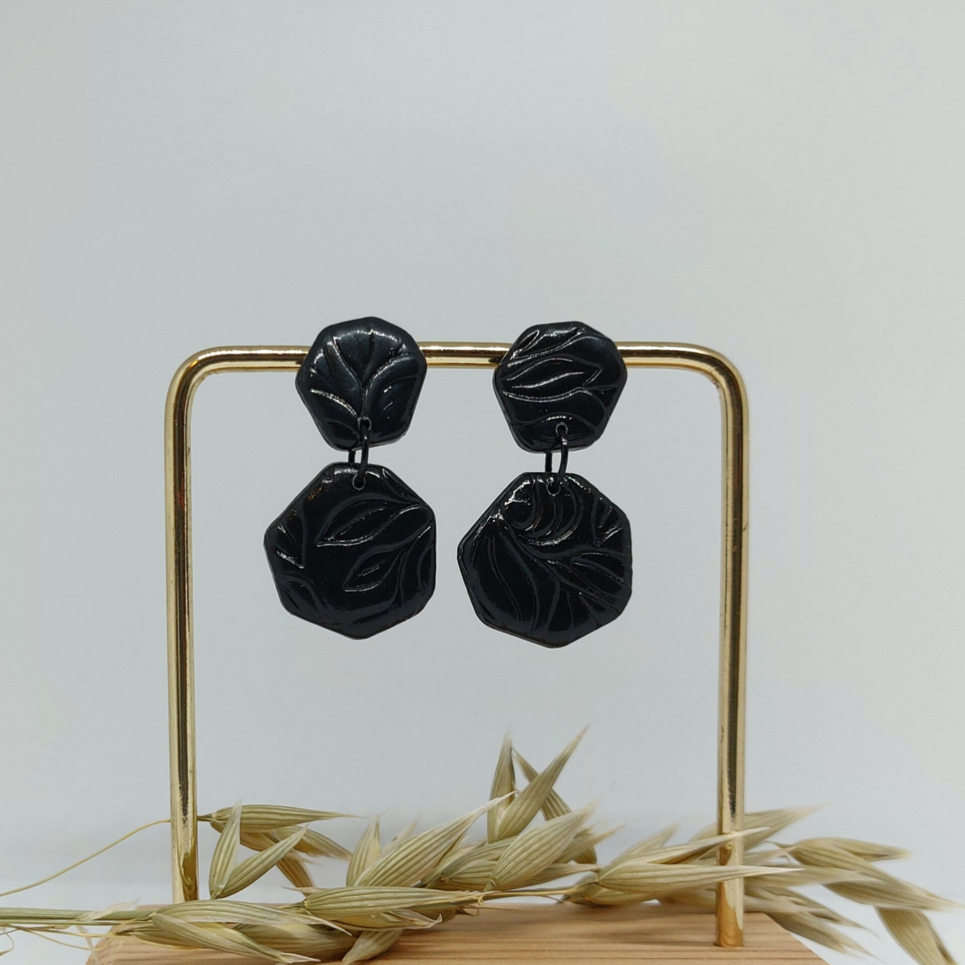 sierlijke zwarte oorbellen, lichtgewicht, gemaakt uit polymeerklei en afgewerkt met RVS materialen
