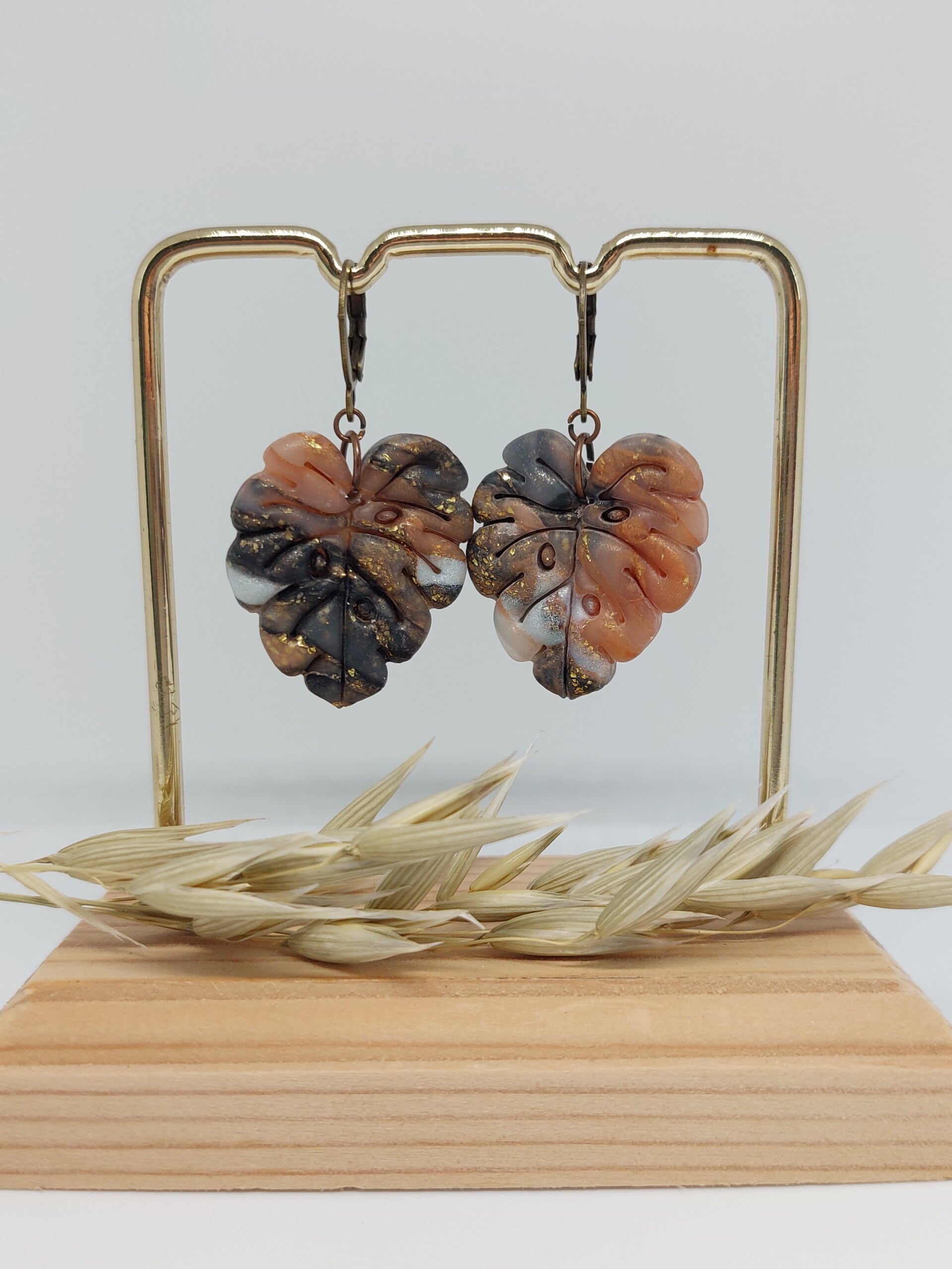 Handgemaakte herfstblaadje oorbellen, lichtgewicht, gemaakt uit polymeerklei, afgewerkt met RVS materialen