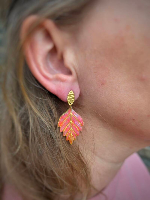 Handgemaakte roze blaadjes oorbellen, feestelijk, lichtgewicht, gemaakt uit polymeerklei en afgewerkt met RVS materialen