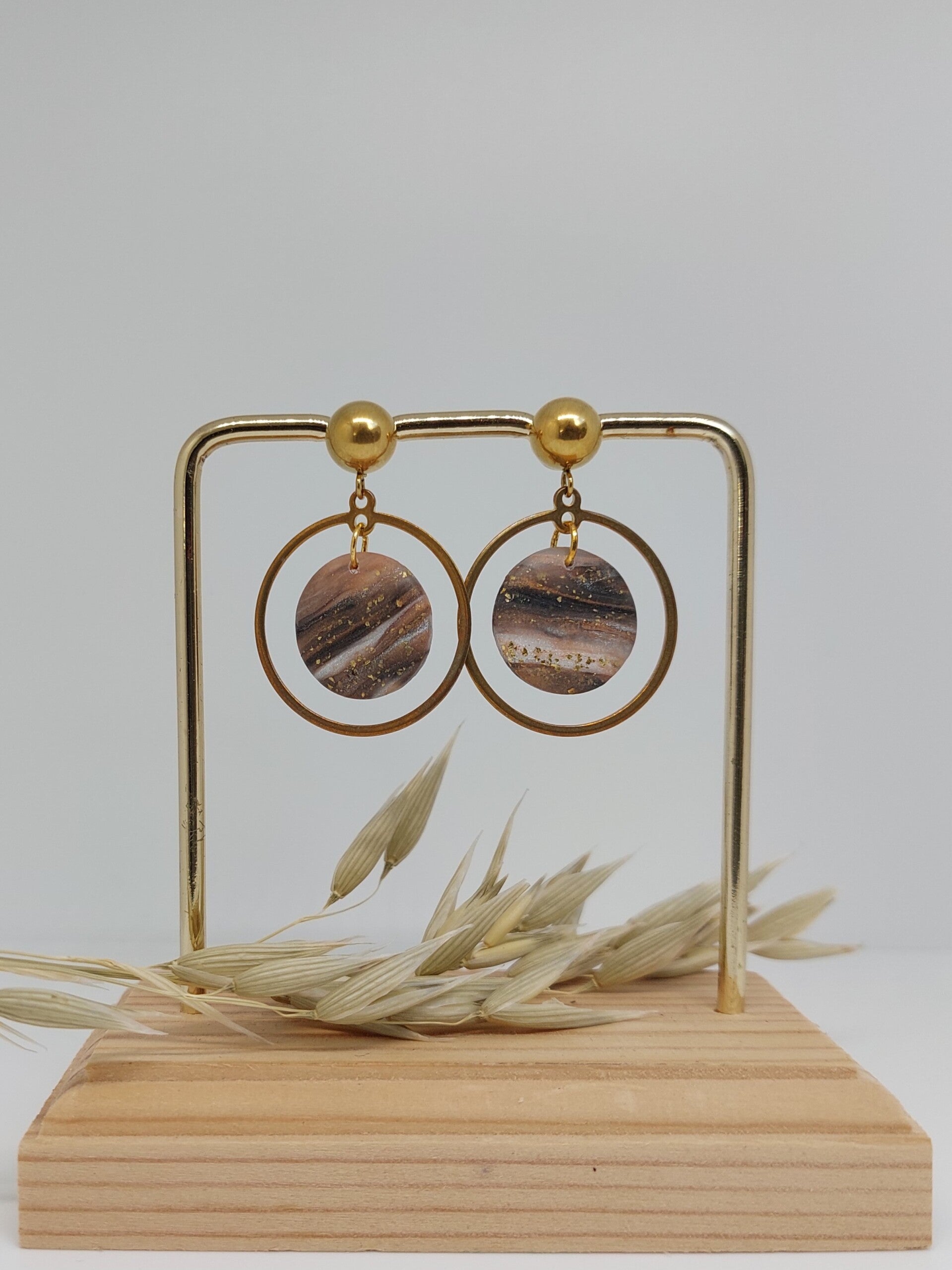 Handgemaakte herfstkleurige oorbellen. Lichtgewicht, gemaakt uit polymeerklei en afgewerkt met RVS materialen.