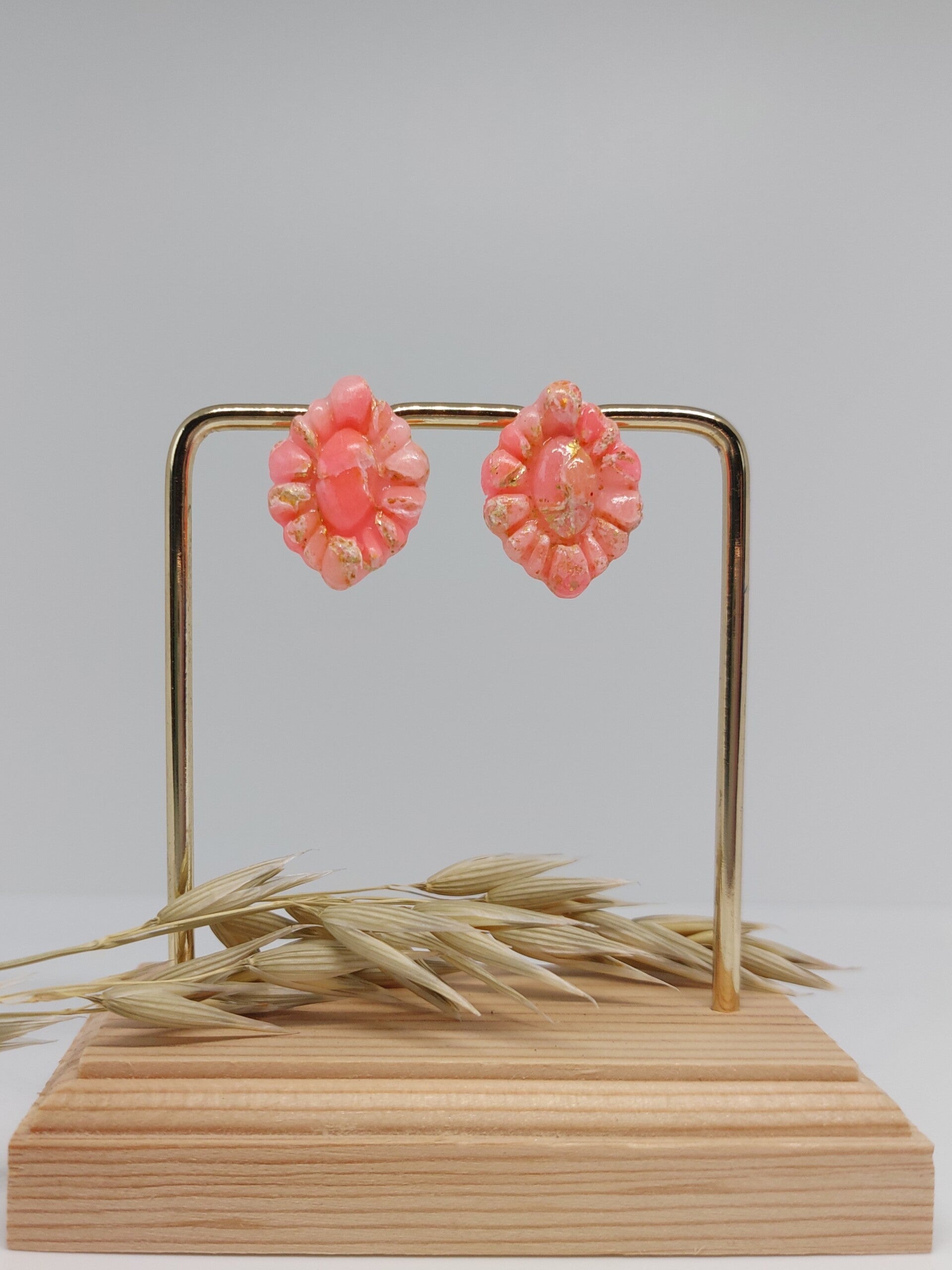 Roze klassieke oorbellen, handgemaakt uit polymeerklei en afgewerkt met RVS materialen.