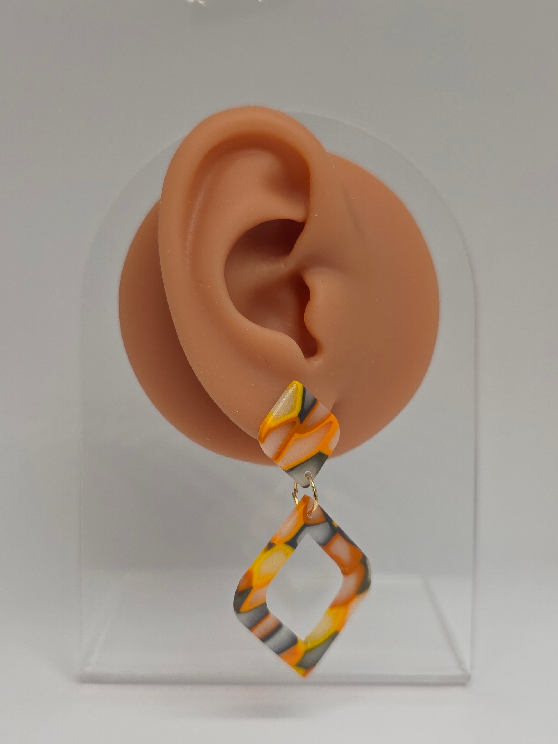 Leuke multicolor oorbellen, herfstkleuren, RVS oorsteker.