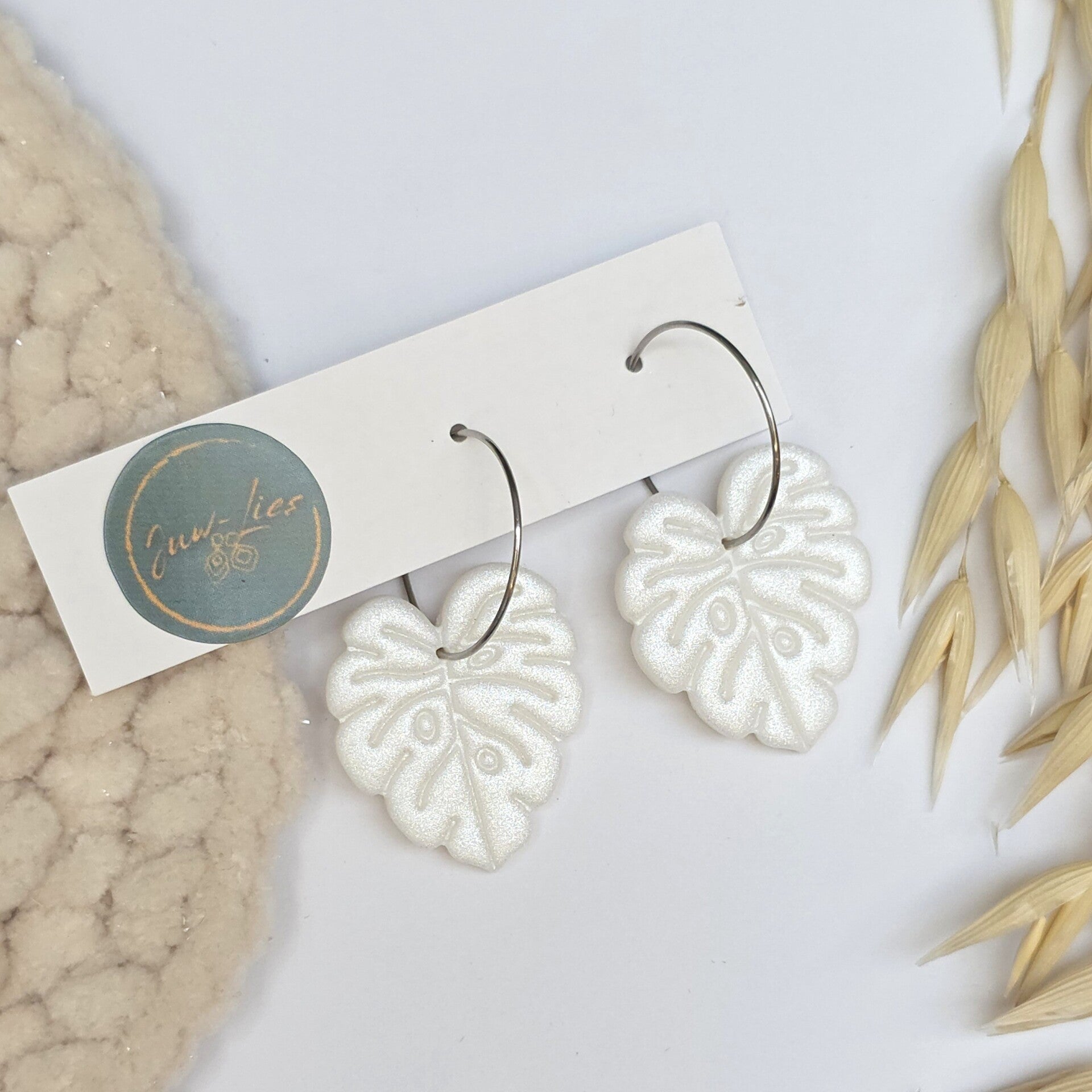 Parelmoer herfstblad aan zilverkleurig RVS oorring