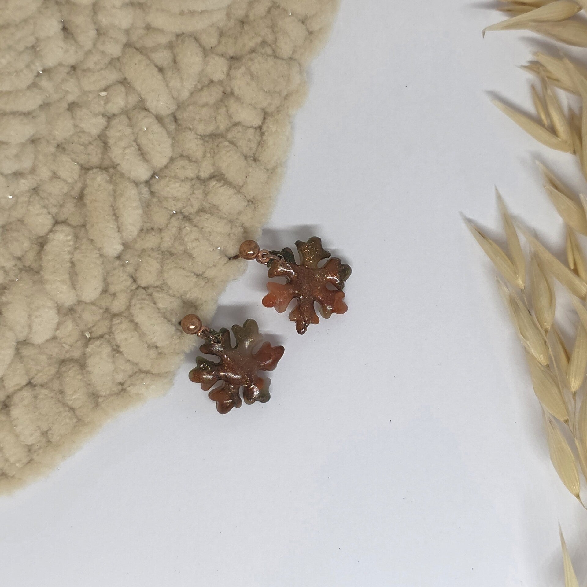 sneeuwvlokje in herfstkleuren aan oorsteker.