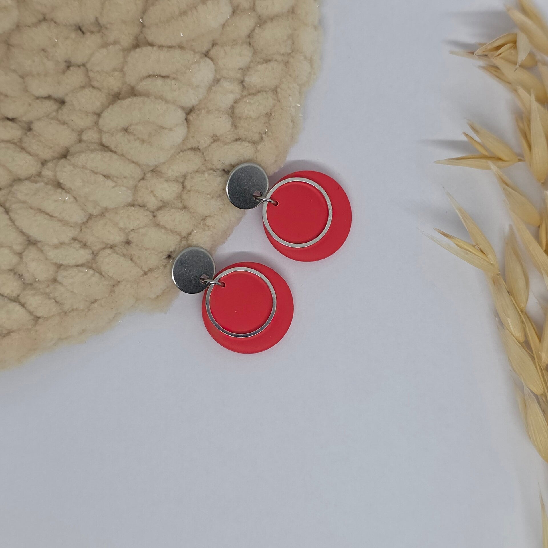 Roze ronde oorbellen met rva zilveren oorsteker en cirkel